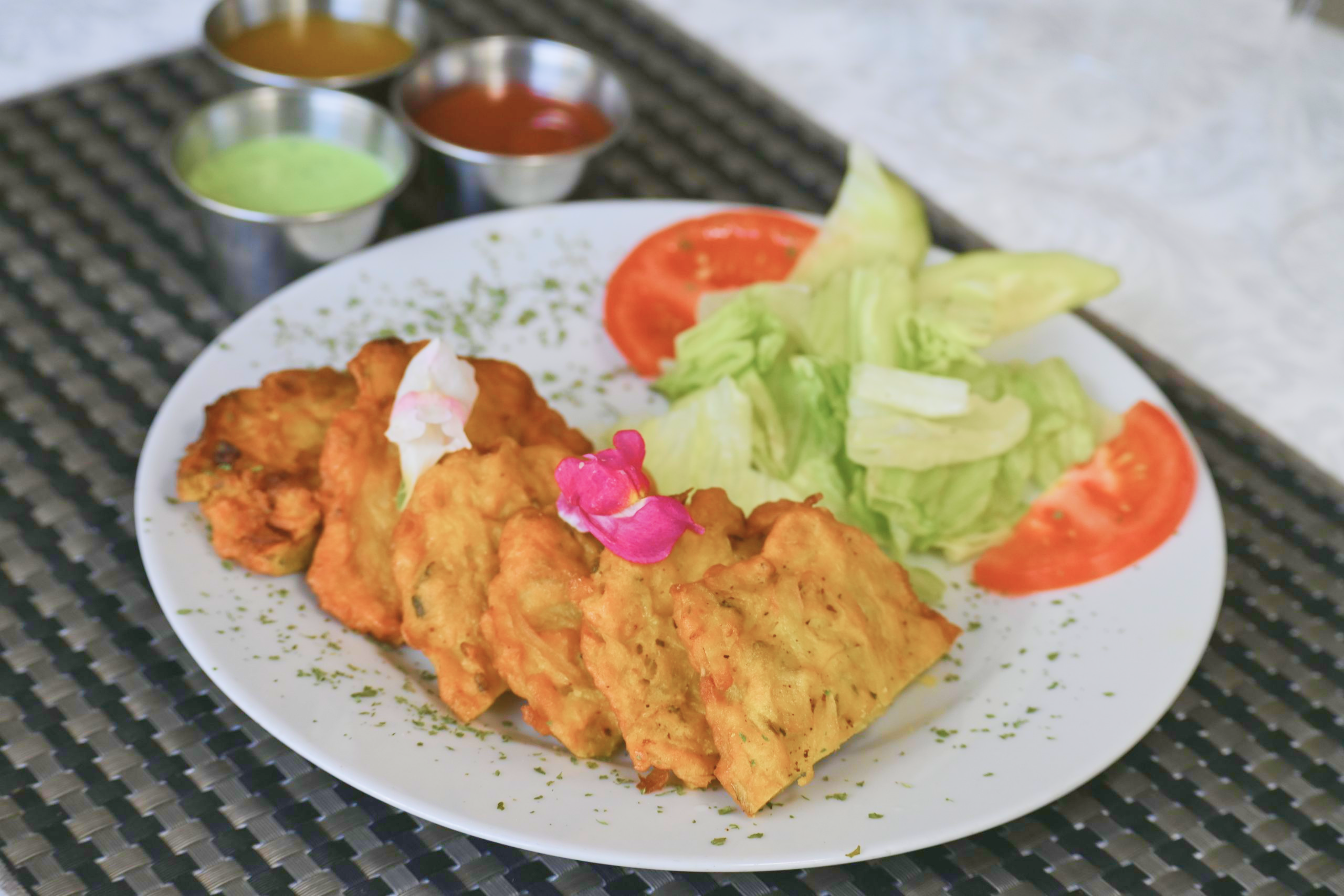 Cebolla laminada frita en harina de garbanzo | Ceba laminada fregida amb farina de cigró
